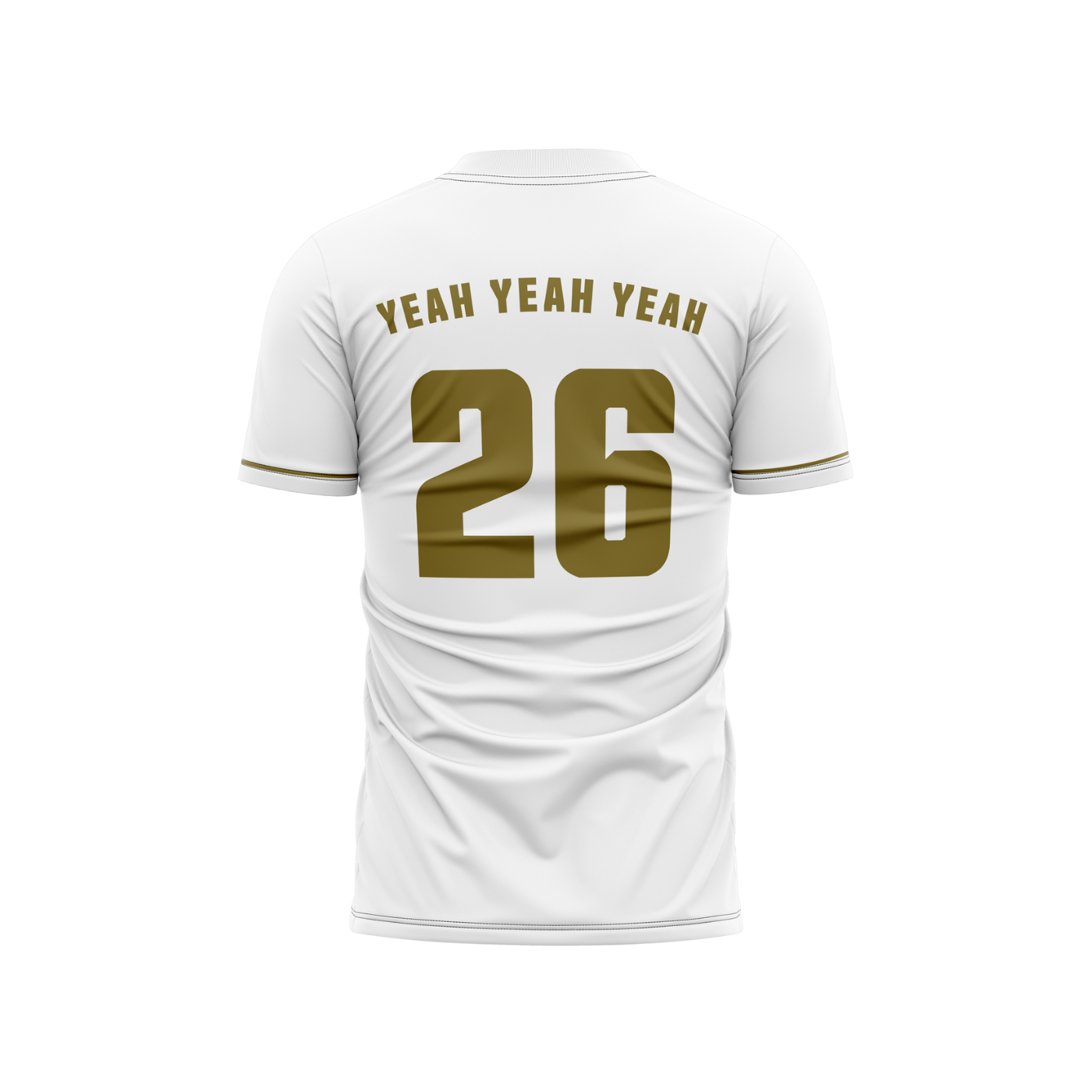 -Exclusive Cast Football Shirt made in partnership with The Terrace, with embroidered Creation and Scruff of the Neck logos, Cast logo down the sleeves, and 'YEAH YEAH YEAH 26' print on the reverse.